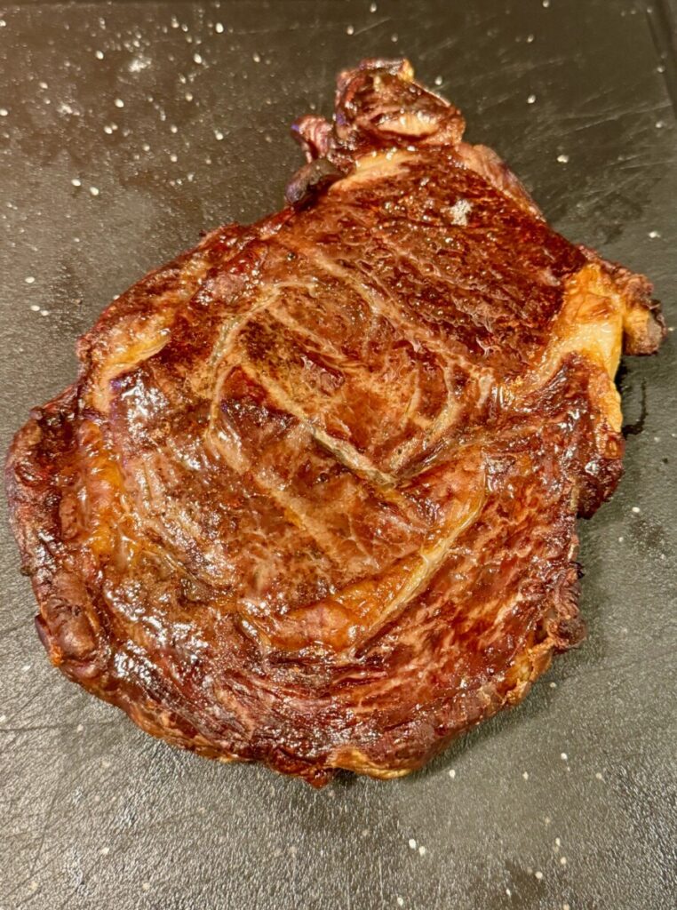 Anyway, that was today’s steak. It’s a smaller ribeye that dry brined in my fridge for several days. It was delicious, even with COVID.